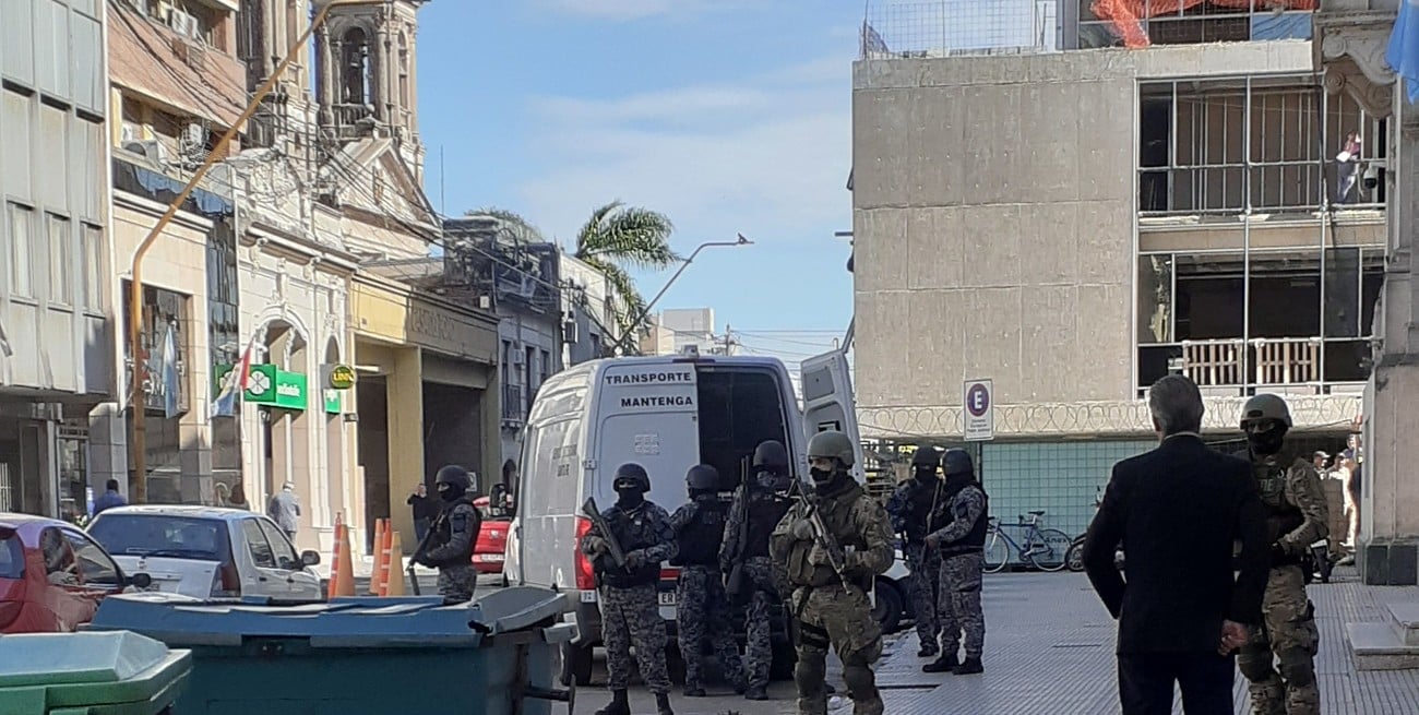 Una docena de efectivos del Grupo de Operaciones Especiales Penitenciarias custodiaron el viaje de Coronda a Tribunales de los hermanos Leiva. Crédito: El Litoral
