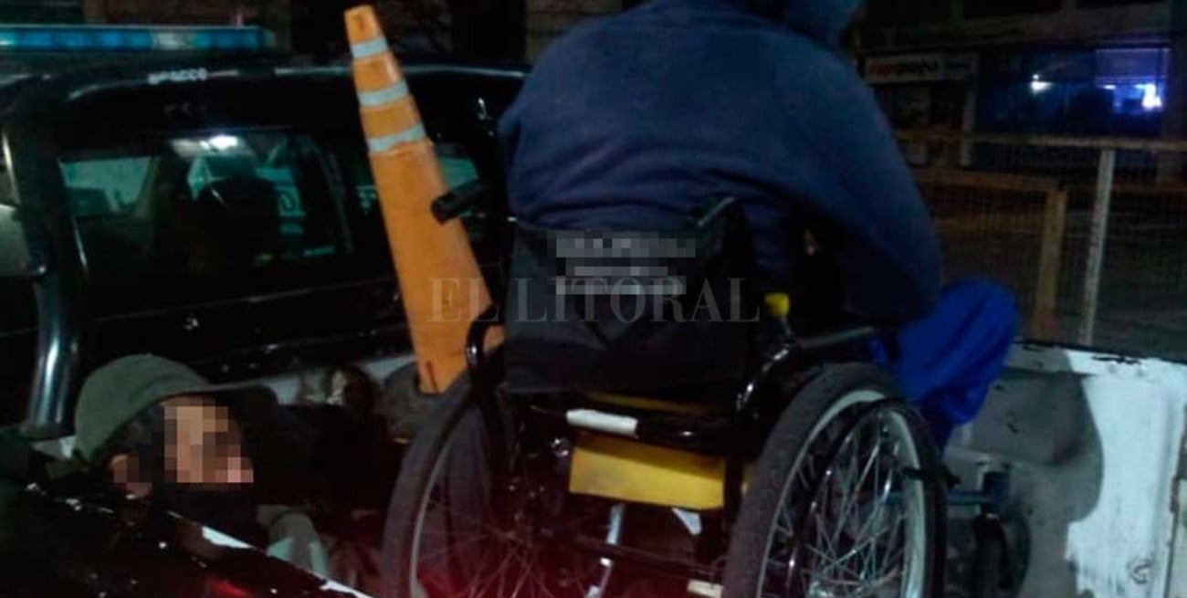 A poco de arribar los uniformados sorprendieron a dos hombres de 35 años, uno de ellos en silla de ruedas, los que terminaban de ocultar detrás del tronco de un árbol, la rueda auxiliar de un vehículo.