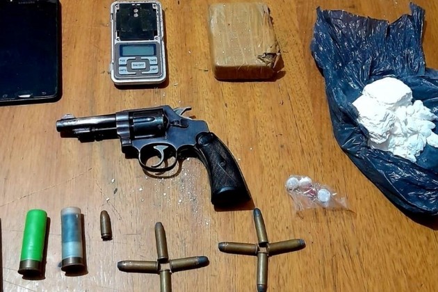 También secuestraron una balanza de precisión con restos de sustancia blanquecina, un celular conectado a un cargador portátil y un revólver calibre .22 marca Tanque, descargado.