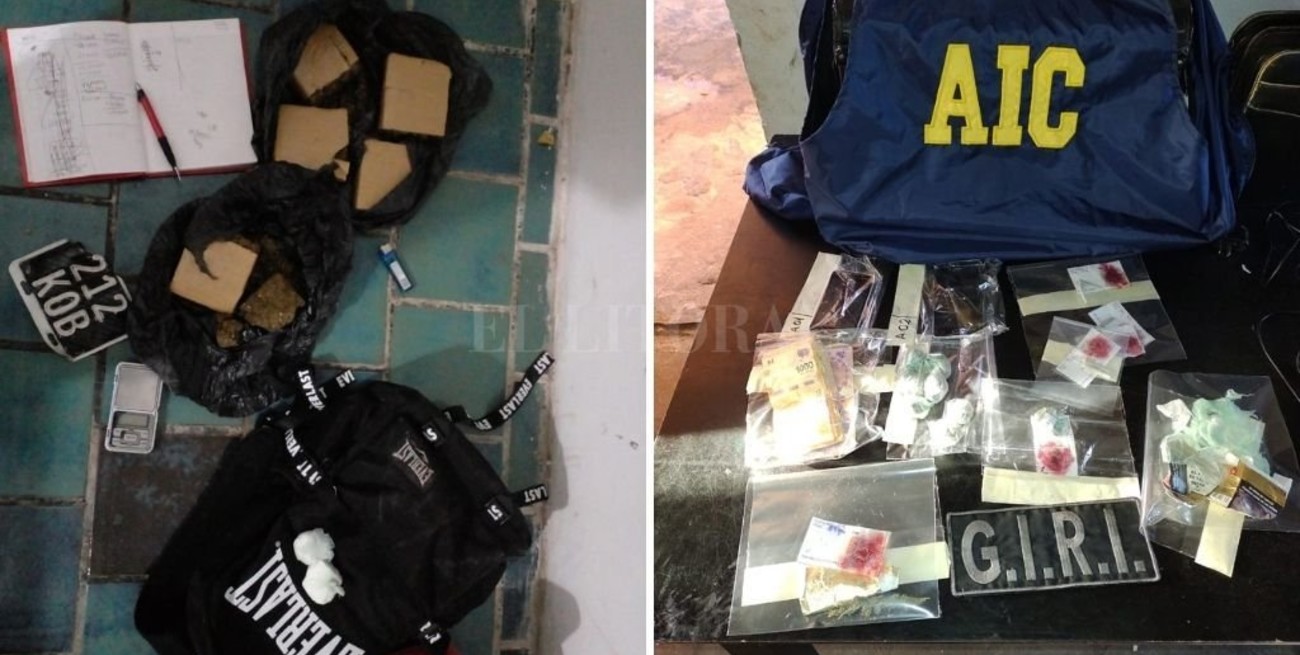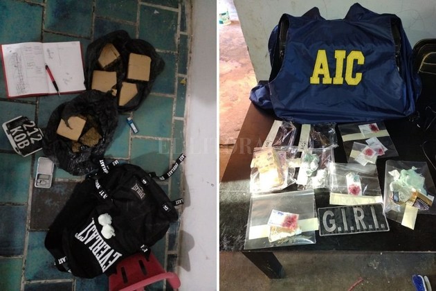 En los allanamientos los agentes secuestraron 1.742 gramos de marihuana en trozos compactos y fraccionada lista para su comercialización, 40 gramos de cocaina, balanzas, teléfonos celulares, dinero en efectivo la suma de $ 10.000, un automóvil VW Vento de color gris y documentación de interés para la causa.