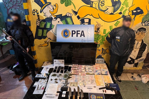 Durante los procedimientos, que se ejecutaron de manera simultánea, se incautaron varias dosis de clorhidrato de cocaína y marihuana, dos armas de fuego, numerosas municiones, doce dispositivos telefónicos, una balanza de precisión, 735.500 pesos en efectivo y documentación de interés para la causa.