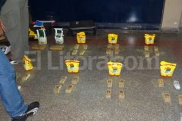 En la requisa que se le realizó, el mismo portaba un pasaje para la ciudad de Córdoba y llevaba consigo una valija donde, entre las prendas de vestir, también tenía numerosos paquetes de yerba que contenían un total de 30 panes de cocaína.