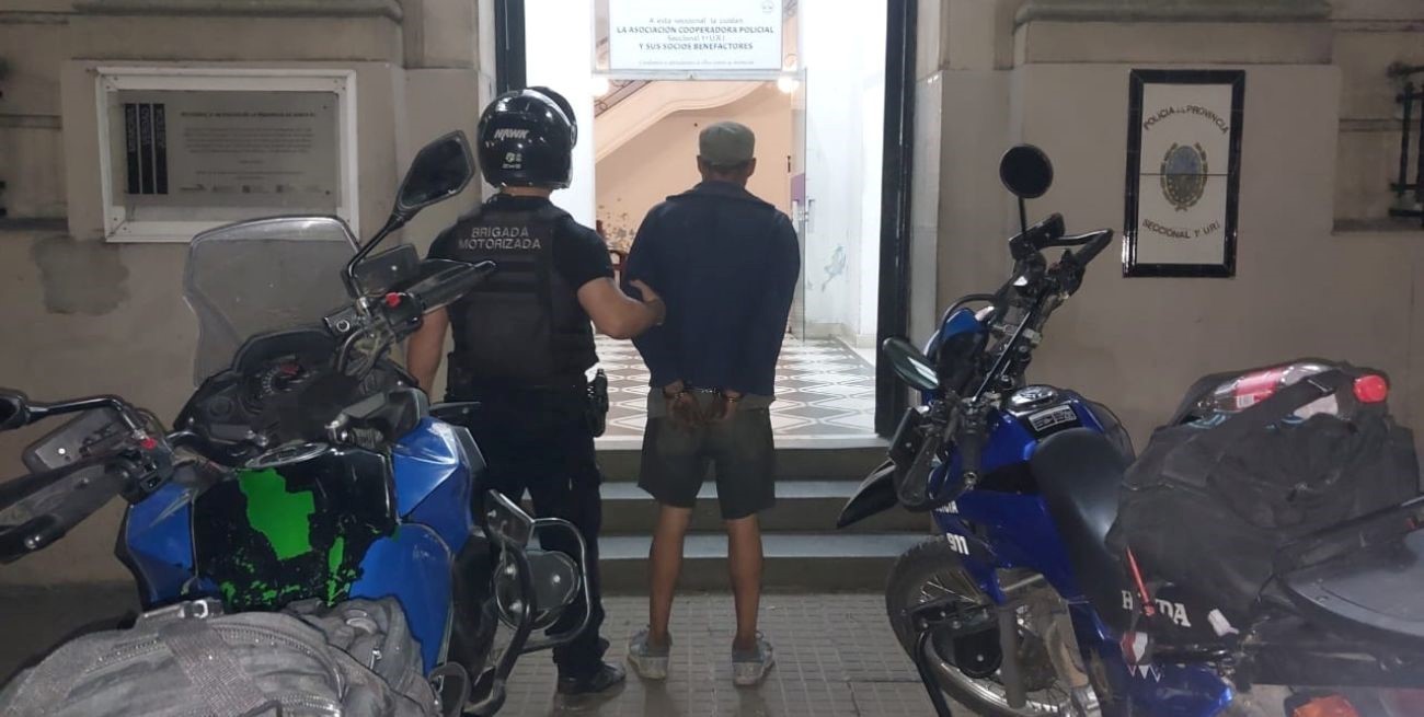 Personal de la Brigada Motorizada se encontraba realizando su patrullaje habitual cuando observó a un hombre agazapado en el umbral de una casa ubicada en 9 de Julio 1200. El sujeto, al notar la presencia policial, guardó algo en una mochila roja que llevaba consigo.