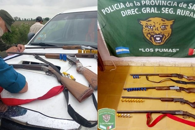 Los cazadores fueron entonces identificados por "tenencia indebida de arma de fuego de uso civil": el conductor, de 61 años, tenía una escopeta calibre 16; un segundo hombre de 40 años llevaba un arma similar; otro sujeto de 44 años cargaba una escopeta de dos caños calibre 20; y un joven de 18 portaba una escopeta de un caño calibre 20.