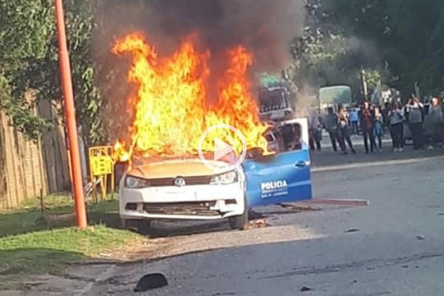 Lejos de calmar los ánimos, la parcialidad de Atlético Chabás siguió provocando desmanes fuera de la cancha y terminó prendiendo fuego un patrullero. A raíz de eso, una mujer policía tuvo una crisis de llanto que quedó asentada en los registros fílmicos.