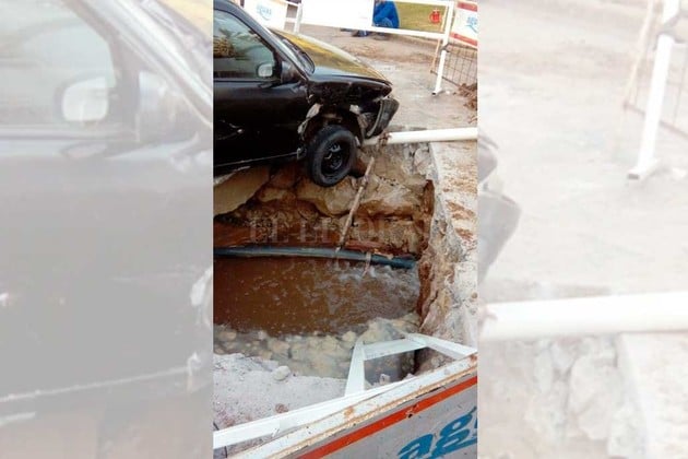 Este ocasional testigo expresó que no hubo personas lesionadas y que en el auto que corrió peligro de caer en el pozo circulaba una mujer con su hija. Mientras que en el otro vehículo viajaba un hombre.