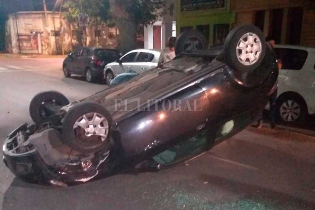Fuentes policiales indicaron a El Litoral que el hecho ocurrió en la zona de calle Castellanos al 1300, esto es casi llegando a Güemes, cuando un Ford Ka impactó contra una camioneta estacionada y terminó volcado “patas para arriba”.