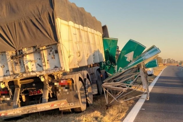 En concreto dicho rodado, por causas que se tratan de determinar, colisionó contra el cartel de señalización próximo al ingreso a la ciudad de Santo Tomé, quedando éste en el cantero central de la autopista con parte del cartel incrustado entre cabina y acoplado.