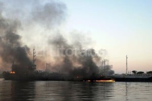 El fuego afectaba esta mañana "proa y popa" de la embarcación argentina, "pero hasta el momento no hubo derrame de combustible", aseguró a Télam, Domínguez.