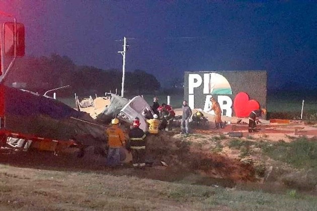 De acuerdo a las primeras informaciones, el siniestro tuvo lugar donde se encuentra el cartel de bienvenida a la comuna y tuvo como protagonista a un camión que impactó contra la alcantarilla.