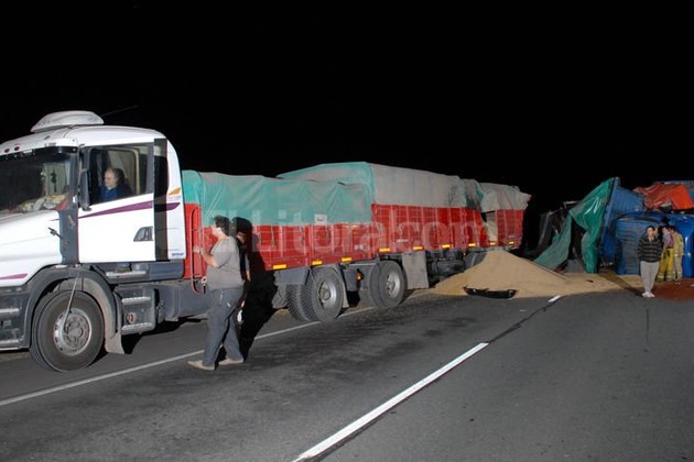 Según precisaron fuentes de la Agencia de Seguridad vial, el siniestro fue en el km 99 de la autopista en el sentido hacia Rosario. El tránsito estuvo obstruído hasta las 2.30 que los bomberos retiraron los vehiculos y el cereal que habia quedado esparcido en la calzada.