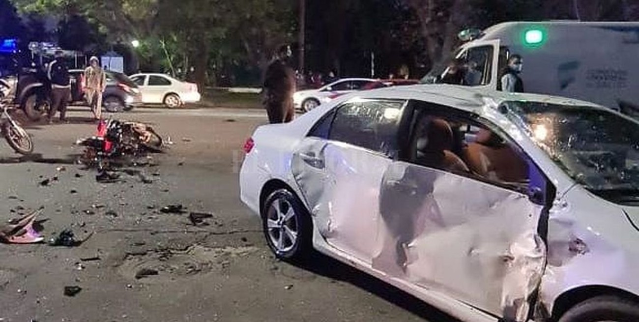 Un motociclista falleció este domingo por la tarde luego de chocar con un auto en la intersección de las calles Almirante Brown y Alberti, esto es, a metros del monumento a Carlos Monzon, en plena costanera oeste de lala capital provincial.