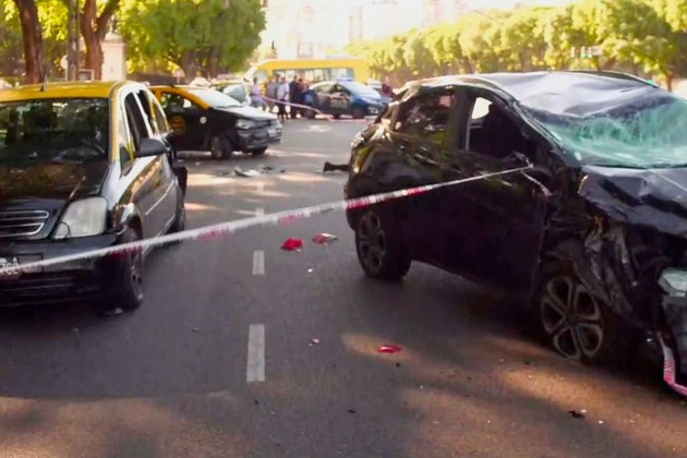 Dos personas murieron y otras cuatro resultaron heridas este sábado por la madrugada cuando un vehículo chocó contra una fila de taxis y una camioneta que estaban estacionados en Avenida Libertador, a la altura del Hipódromo de Palermo, según informaron fuentes policiales.