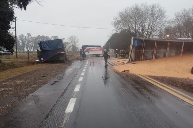 Según detalló la jefe de bomberos, Jorgelina Di Bene, “estuvieron involucrados dos camiones -Ford Cargo 1730 y un Fiat Iveco-, que por cuestiones que se están investigando, colisionaron frontalmente”, destacando que uno de ellos iba cargado con maíz y circulaba en dirección Venado Tuerto-Rosario.