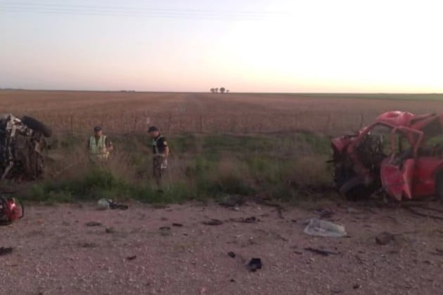 En ese lugar colisionaron frontalmente un Ford Fiesta, que circulaba hacia Doblas, y una Toyota Hilux, que transitaba en sentido contrario.