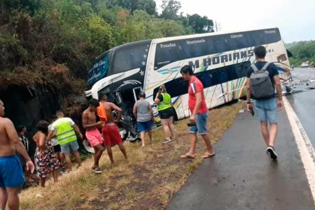 La policía local informó que el micro de la empresa Horianski circulaba en sentido Puerto Iguazú-Posadas y, por causas que se tratan de establecer, chocó de frente con la Chevrolet S10, que viajaba en sentido contrario.