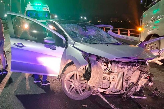 Aparentemente el automóvil, por razones que se investigan, colisionó primero contra las defensas laterales de la vía de comunicación.