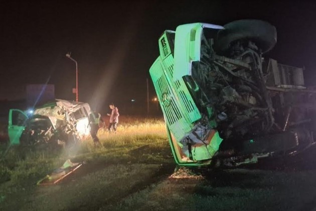 Cerca de las 22 y por circunstancias a determinar un camión Mercedes Benz 1618 con dos personas a bordo entró en colisión con una camioneta Mercedes Benz Vito conducida por Germán Rubén Calvi, de 58 años. Fue tal el impacto que el segundo de los vehículos nombrados quedó literalmente destruido y el camión volcó.