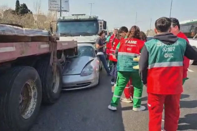El episodio ocurrió este viernes pasadas las 12 del mediodía, en sentido hacia el centro porteño. Según fuentes policiales, el Porsche impactó contra la parte trasera de un camión, quedó atrapado debajo del mismo y provocó una reacción en cadena que involucró a otros dos vehículos de carga, uno de ellos un camión “mosquito” utilizado para el transporte de autos nuevos.