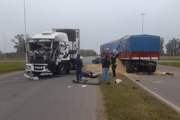 Según la información policial, por razones a determinar, cerca del mediodía entraron en colisión un camión Fiat Iveco cargado con soja, conducido por un hombre de 55 años, sangenarino, con otro camión de la misma marca y modelo, en este caso con semirremolque, llevando como carga alimentos congelados, y que era manejado por un hombre de 40 años, domiciliado en Gualeguay, provincia de Entre Ríos.