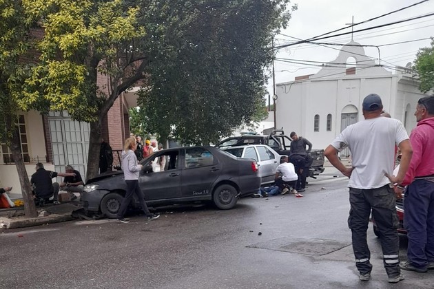 Vecinos y testigos que pasaron por el lugar, señalaron que tras el impacto entre taxi y móvil policial, se produjo un choque en cadena que afectó a terceros, ocasionando importantes daños materiales a vehículos que estaban estacionados y en circulación.