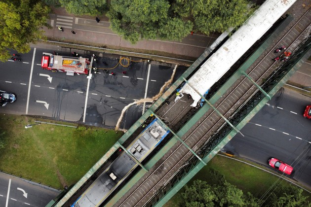 El mayor daño lo tuvo la parte trasera del tren que estaba vacío, que descarriló producto del impacto, mientras que el que estaba con pasajeros sufrió roturas en la parte delantera.