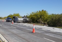 Días atrás, un camión cisterna que transportaba leche volcó a la altura de la planta de residuos del relleno sanitario, cuando transitaba por Circunvalación Oeste con sentido hacia la ciudad de Santa Fe.