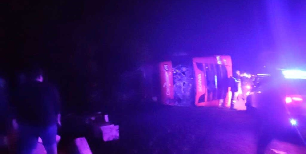 El transporte quedó tumbado al costado del camino. Mientras se retiraba el vehículo se desviaba a ruta 11.