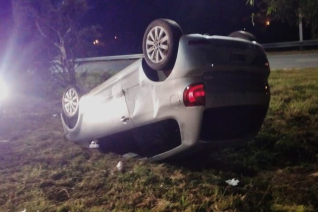 Un importante siniestro vial ocurrió este martes en horas de la madrugada sobre la autopista Santa Fe - Rosario a la altura del Colón Hotel de Campo perdió el control y volcó a un costado de la calzada pavimentada, sobre el cantero central.