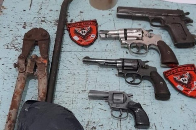Como resultado, los policías secuestraron cuatro armas de fuego, un revólver calibre 38, un revólver calibre 32 largo, un revólver calibre 22 corto, una pistola calibre 11.25 con numeración suprimida, un cargador de 11.25 con numeración suprimida, municiones calibre 45 con numeración suprimida y más municiones calibre 38.