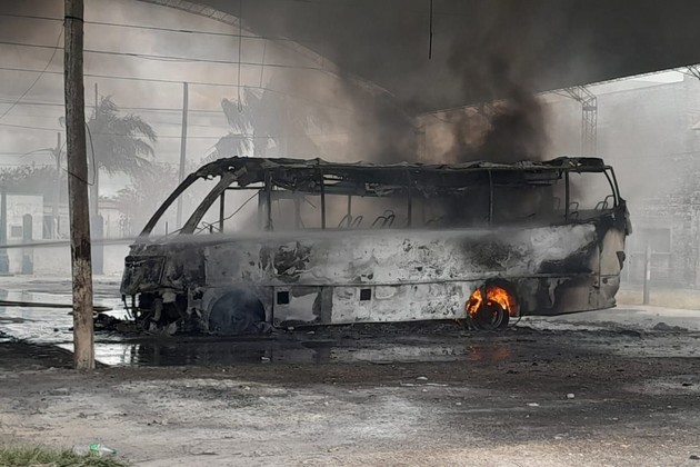 En las imágenes se puede observar que el minibus quedó completamente destruido, también se quemaron unos postes, mientras que el tinglado no sufrió graves daños. Aún se desconocen las causas del incendio pero se especula que pudo ser a raíz de un cortocircuito.