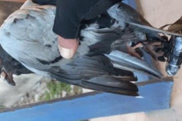 La paloma recién agarrada, con el envoltorio atado a sus patitas. Unidad Regional XV de Policía.