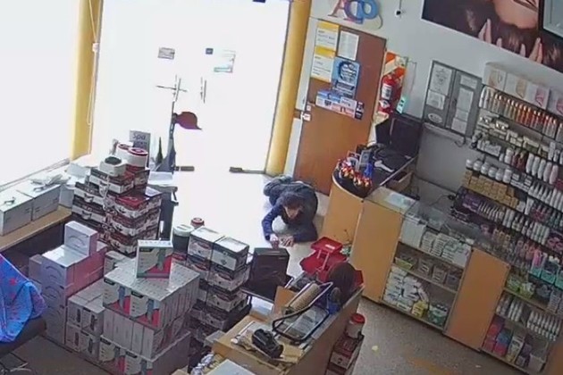 Fernández se movió a rastras por el local de Raffi cosmética para no activar los sensores de movimiento del sistema de seguridad, pero fue registrado por las cámaras. Crédito: Captura de pantalla.