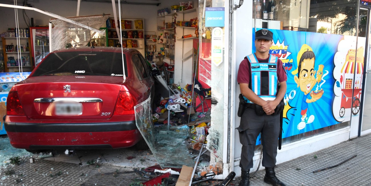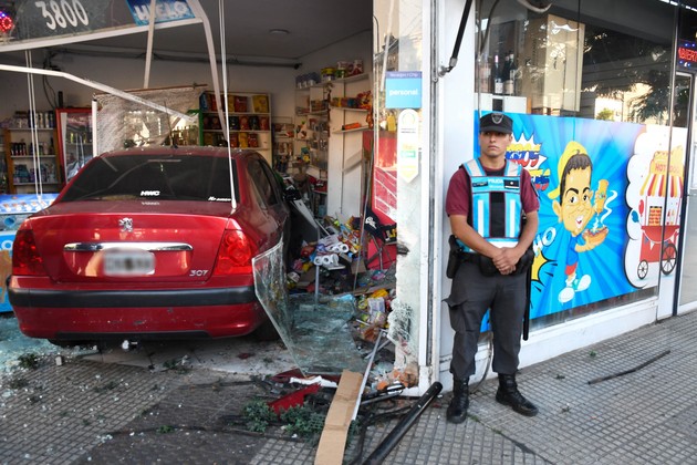 El hecho se registró aproximadamente a las 2:30 en la esquina de las avenidas Castro Barros y Belgrano donde el conductor de un Peugeot 307 perdió el control del vehículo y se metió de lleno dentro del negocio.