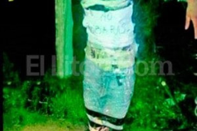 "Él cuenta que cuatro o cinco policías de Santa Fe lo habían golpeado ferozmente, lo encintaron, lo adhirieron a un trozo de madera y le colocaron un cartel en el pecho que dice "no robarás"", agregó.