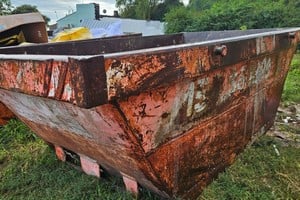 La damnificada se sorprendió al pasar por inmediaciones del cruce de calles Sarmiento y Centenario, donde halló uno de esos armatostes de hierro con residuos.