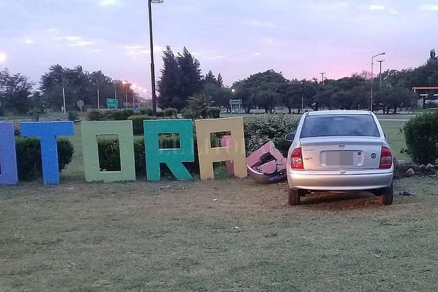 El episodio ocurrió alrededor de las 6 de la mañana y tuvo como protagonista a un Chevrolet Corsa Gris, que terminó incrustado contra las letras de cemento que forman la palabra Totoras sobre la rotonda.