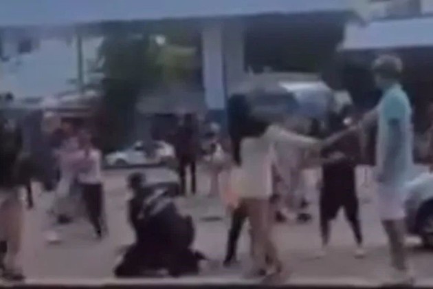 Un testigo de la pelea grabó un video en el que se muestra cuando un agente intentaba detener a un chico y otro joven le pega en la espalda con un palo.