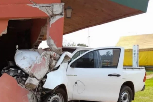 El hecho ocurrió aproximadamente a las 8:30 horas, sobre la avenida Juan Branchi en cercanías a la intersección con la Ruta Nacional N° 14. Allí, una camioneta blanca modelo pick-up Toyota Hilux se accidentó en el edificio situado en el acceso de la ciudad.