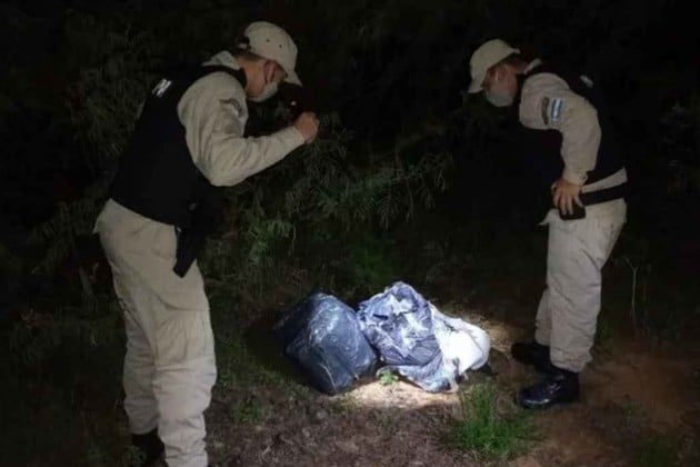 Por un lado, durante la noche, el personal patrullaba la zona de frontera cuando detectó, a la altura del kilómetro 1276 del Paraná, dos bultos ocultos entre la maleza. Luego de requisar lo hallado se constató que se trataba de más de 60 kilos de marihuana dividida en 57 panes.