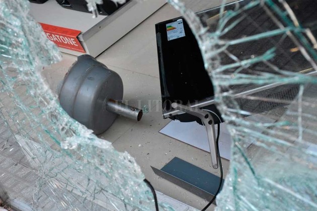 Para destrozar el blíndex los malvivientes arrojaron la base (de cemento) de una sombrilla. Acto seguido se llevaron un televisor para finalmente darse a la fuga.