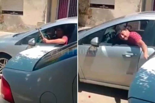Las imágenes muestran que el hombre conducía un auto y, mientras le gritaba a la mujer, sacó un martillo y comenzó a destrozar el vehículo de la víctima, que estaba estacionado.