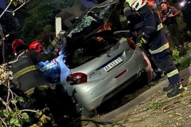 El trágico accidente ocurrió en el cruce de las avenidas 27 de Febrero y Escalada tras una persecución policial donde, por causas que se investigan, el conductor del Peugeot gris perdió el control y colisionó contra un árbol.
