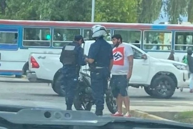 Este lunes hubo un revuelo en la capital de San Juan ya que un hombre salió del Centro Cívico con una remera que lucía una esvástica, el "símbolo nazi". A los pocos minutos, comenzó a generar enojo y repudio por parte de los transeúntes, al punto que tuvo que intervenir la policía, para prevenir que alguien dañe al sujeto.