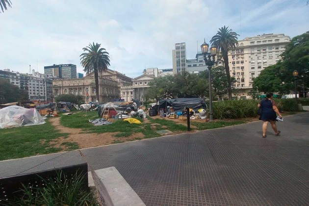 Se trataba de unas 30 personas que estaban ocupando el espacio público. Eran del Tercer Malón de la Paz de Jujuy que realizaban una “vigilia” frente a Tribunales en reclamo contra la reforma de la Constitución de Jujuy.