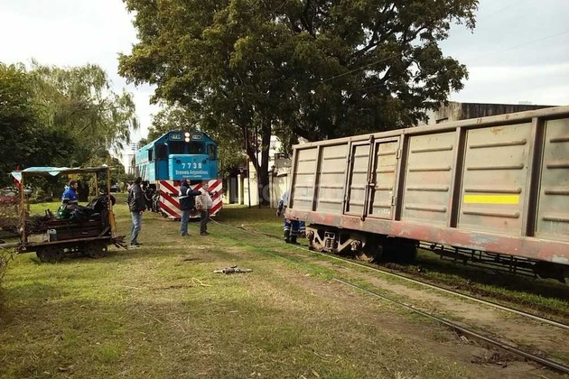 Mientras investigan las razones del accidente, personal del Belgrano Cargas trabajaba para reincorporar el tren en las vías y poder continuar con el viaje.