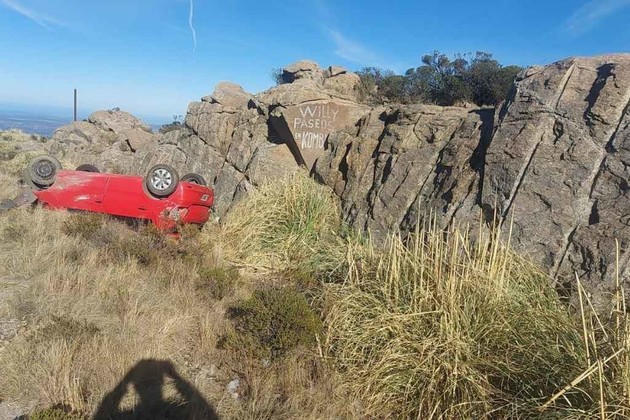 Un hombre tumbó con su vehículo mientras transitaba por el camino de las Altas Cumbres. Personal de la Policía Caminera logró detectar el auto que estaba dado vuelta al costado de la ruta con el conductor en su interior.