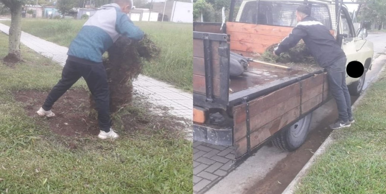 Tres hombres fueron descubiertos mientras se robaban una serie de panes de césped del espacio público en el norte de la ciudad de Santa Fe.