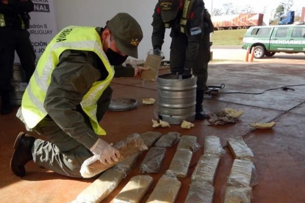 Según informaron fuentes oficiales, tras realizar un control en el transporte de encomiendas, efectivos de Gendarmería Nacional descubrieron, a través del escáner y el can antinarcóticos, los barriles con la droga.