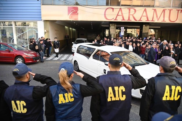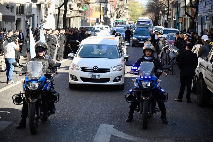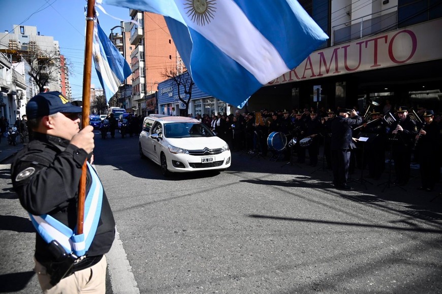 Familiares, amigos y compañeros de la fuerza le dieron el último adiós a César Carmona, el inspector de Policía que fue asesinado frente a la sede de la Agencia de Investigación Criminal de Rosario.